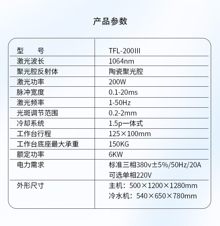 TFL-200Ⅲ型模具激光焊機(jī)是通發(fā)激光公司在TFL-180Ⅲ的基礎(chǔ)進(jìn)行了改良,采用通發(fā)自主研發(fā)的二代精密單燈電源為燈泵浦驅(qū)動(dòng)電源,配置觸摸屏,操作更方便。主機(jī)具備激光頭手搖升降與工作臺(tái)按鈕電動(dòng)升降實(shí)現(xiàn)焊接不同厚度模具的激光焊加工。本款機(jī)型更適用于各類高精密注塑模具激光補(bǔ)焊,精密塑膠模具零件激光修補(bǔ),塑膠模具鈹銅零件激光燒焊;可對(duì)模具使用過(guò)程中出現(xiàn)的磨損進(jìn)行激光修復(fù);對(duì)機(jī)械加工失誤、電火花加工失誤,模具減膠設(shè)計(jì)變更等需要對(duì)模具修改,起到關(guān)鍵的作用,可彌補(bǔ)因加工失誤造成的巨大損失。