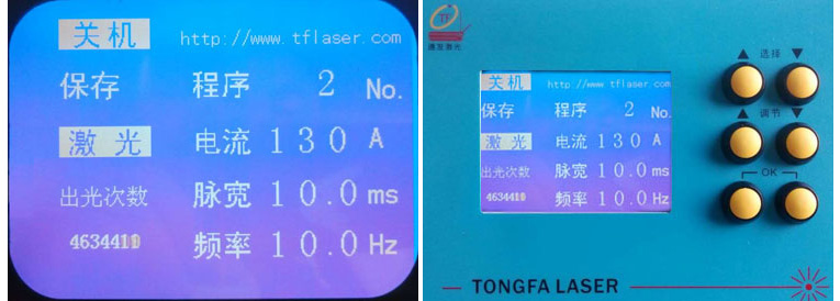 2、本首飾激光點(diǎn)焊機(jī)軟件可選擇中文或者英文界面,對不同加工位置選擇相應(yīng)的激光焊接加工參數(shù)。由選擇按鈕移動光標(biāo)到相應(yīng)的參數(shù)位置,由調(diào)節(jié)按鈕調(diào)節(jié)參數(shù)的大小;