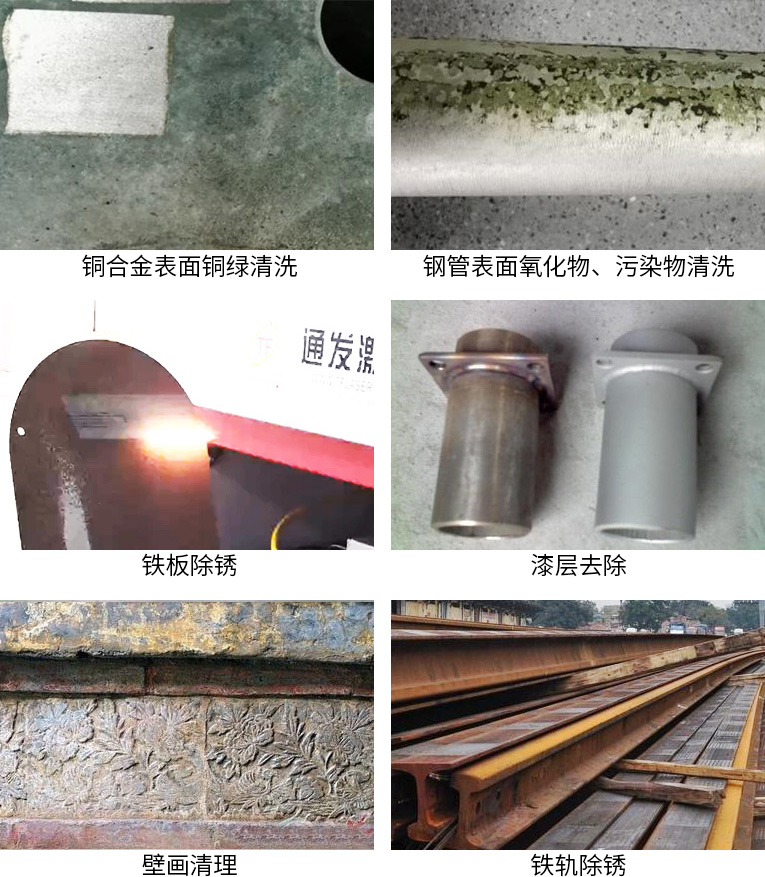 激光清洗具有無研磨、非接觸特點,不但可以用來清洗有機的污染物,也可以用來清洗無機物,包括金屬的銹蝕、金屬微粒、灰塵等,應(yīng)用功效包括:除銹、脫漆、去油污、文物修復、除膠、去涂層、去鍍層。適用于銹層、漆層較厚,油污較深的情況下清潔,以及表面粗糙化、焊縫清潔等工藝環(huán)節(jié),效率極高。應(yīng)用行業(yè):航空、船舶、文物保護、汽車周邊、食品行業(yè)、軌道、橡膠模具、其他。